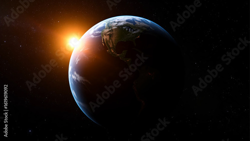 Fototapeta premium Sunrise Over Planet Earth from Space