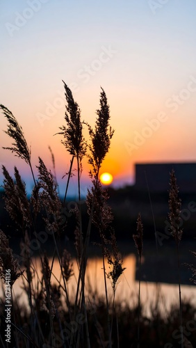© Kirana, Obraz premium Sunrise over reeds by water
