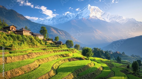 Fototapeta premium Sunrise Over Rice Terraces in the Himalayas