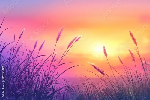 © artwiyanastudio, Fototapeta premium Sunrise over tall grasses