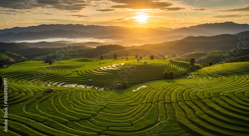 © kapten, Fototapeta premium Sunrise over terraced rice paddies