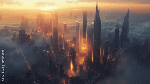 © AnimeVisionAi, Fototapeta premium sunrise over the city