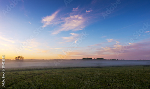 © photoff, Obraz premium Sunrise over the field covered with fog.