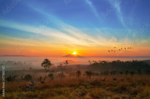 © Petch A Ratana, Obraz premium Sunrise over the field of nature on the morning.
