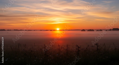 © Kholil, Naklejka premium Sunrise over the field with beautiful colors.