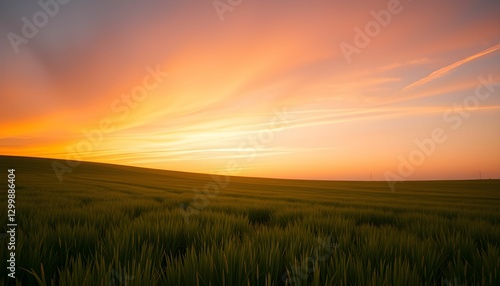 Obraz premium Sunrise Over the Green Field - A Beautiful Horizon View
