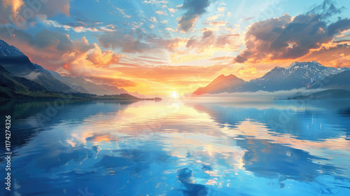 © reflex, Fototapeta premium sunrise over the lake