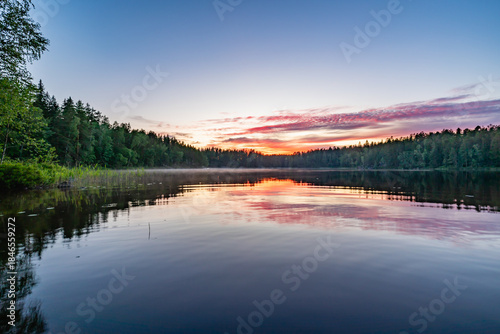 © Artem, Fototapeta premium sunrise over the lake