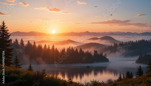 Fototapeta premium sunrise over the lakePerfect 👍 You want the 50 fan artistic keywords...