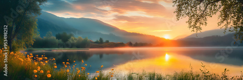 © john, Fototapeta premium Sunrise Over the Mountain Lake
