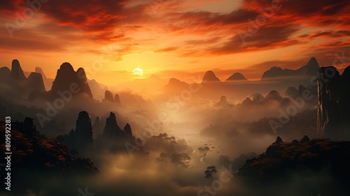 © Murtaza03ai, Fototapeta premium sunrise over the mountains