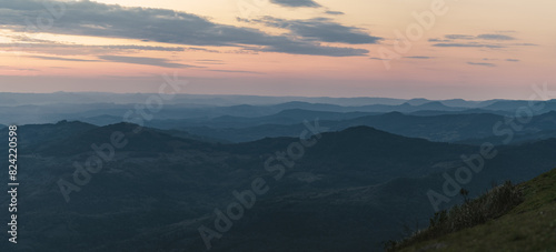 © damianalmua, Obraz premium sunrise over the mountains and clouds at golden hour.