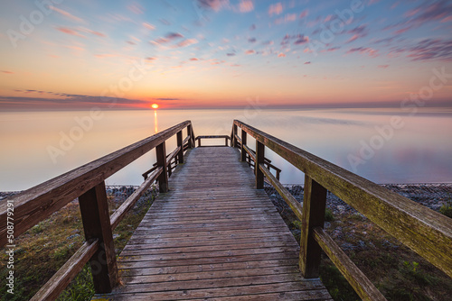 © R_Szatkowski, Naklejka premium Sunrise over the pier in Mecheliki