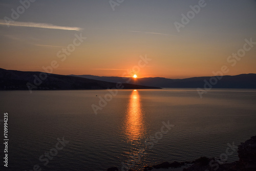 © doda, Naklejka premium sunrise over the sea, clear sky without clouds. golden hour.