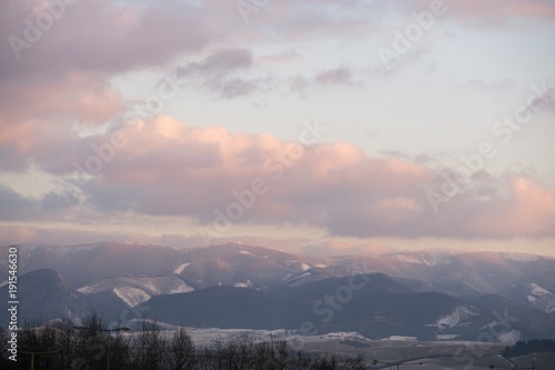 Fototapeta premium Sunrise over the town. Slovakia