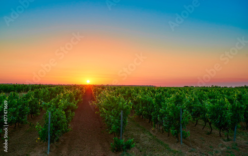 Naklejka premium Sunrise over the vineyards of Ile de Ré