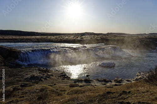 Fototapeta premium sunrise over the waterfall