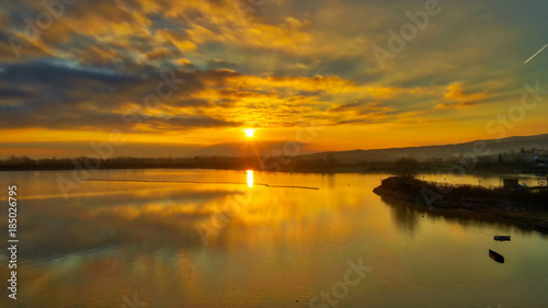 © ververidis, Naklejka premium Sunrise over the wetland of Kerkini Lake in northern Greece