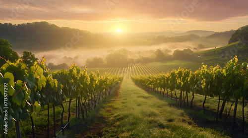 © czphoto, Fototapeta premium Sunrise Over Vineyard Hills
