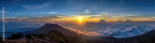 © Nasra, Fototapeta premium Sunrise over volcanic peaks