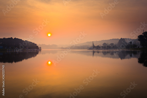 Fototapeta premium Sunrise over Xuan Huong Lake, Dalat, Vietnam