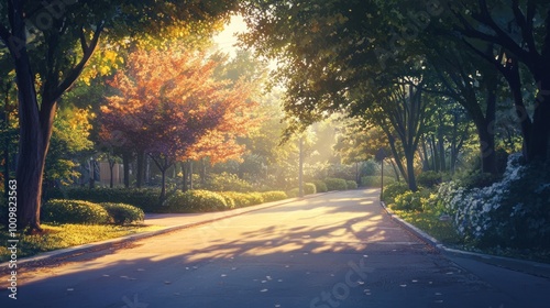 © akhmad, Obraz premium Sunrise Path through a Forest