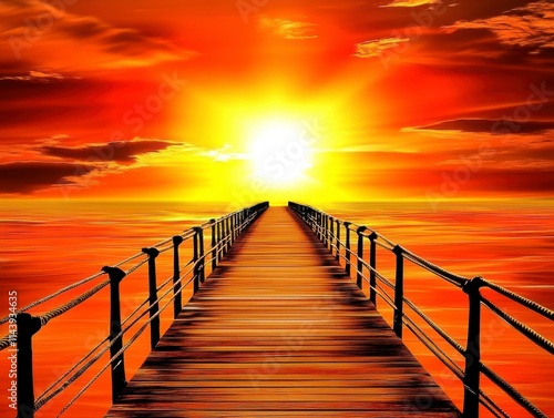 © Younes, Obraz premium Sunrise Pier: A Dramatic View of the Golden Hour