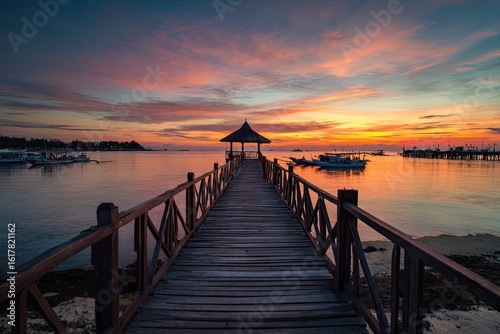 © Muhammad, Naklejka premium Sunrise pier over calm water