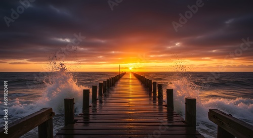 © Logo Dirsi, Obraz premium Sunrise pier over waves