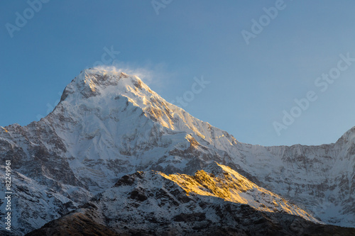 Fototapeta premium Sunrise rays on the peak of Annapurna South from Tadapani, Nepal