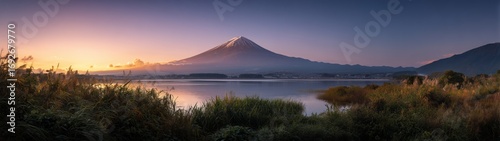 Fototapeta premium Sunrise reflection over mount fuji japan nature photography calm environment...