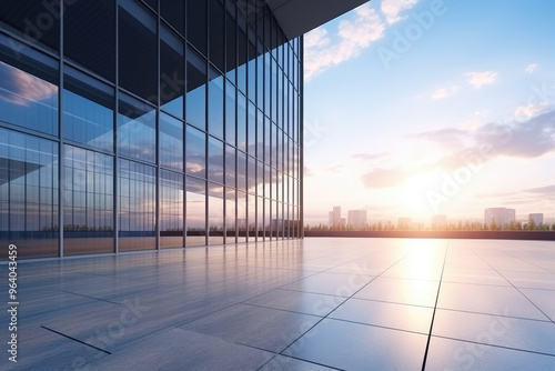 © evening_tao, Fototapeta premium Sunrise Reflections on Glass Office Façade
