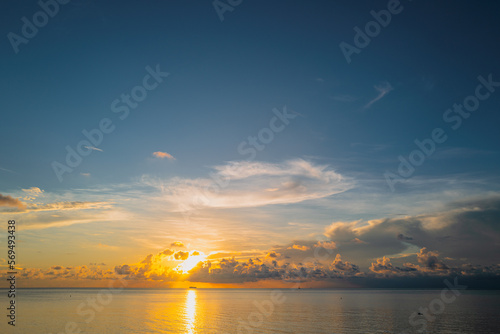 Naklejka premium Sunrise sea on tropical beach. Landscape of beautiful beach. Beautiful sunset...