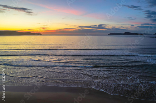 © Merrillie, Fototapeta premium Sunrise seascape with a mix of high and medium clouds