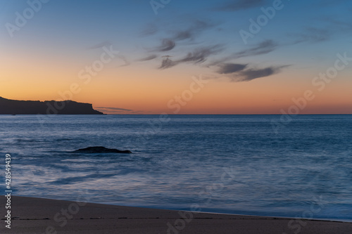 © Merrillie, Naklejka premium Sunrise seascape with scattered high cloud