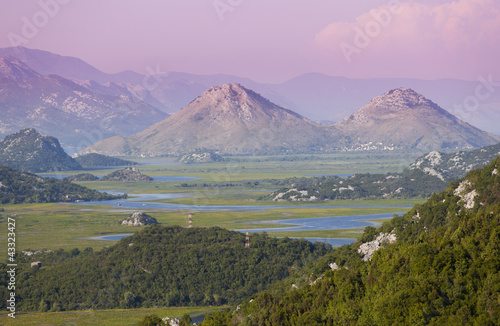 © nataiki, Fototapeta premium sunrise sky and river in the mountain cross the valley, monteneg