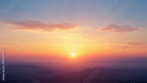 © vxnaghiyev, Naklejka premium Sunrise sky with morning glow, suitable as a background for text or visuals, seasonal change