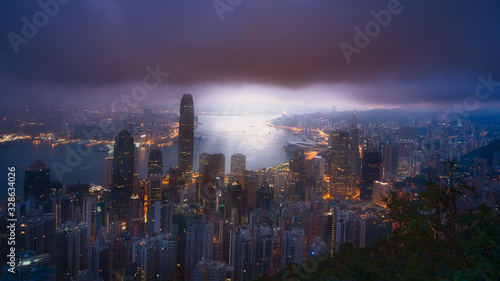 © bank215, Fototapeta premium sunrise skyline cityscape with cloud storm morning