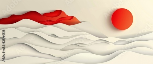 © PLUT_OFF, Naklejka premium sunrise, sunset in Asian style, papercut style, copy space, place for text