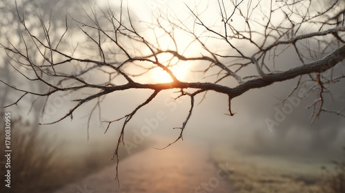 © Tanawin, Obraz premium Sunrise Through Bare Winter Tree Branches