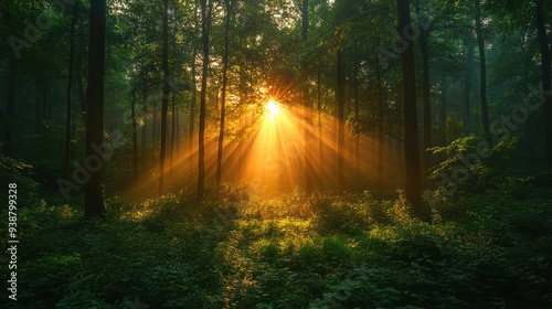 © intan ptra, Naklejka premium Sunrise Through Forest
