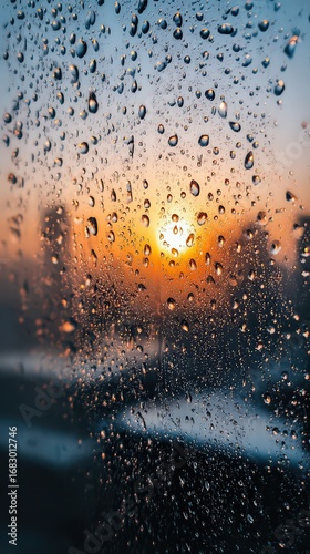 Obraz premium Sunrise Through Window With Rain Drops