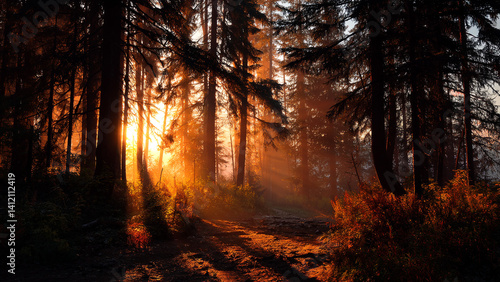 © orange777, Obraz premium sunrise view in the forest