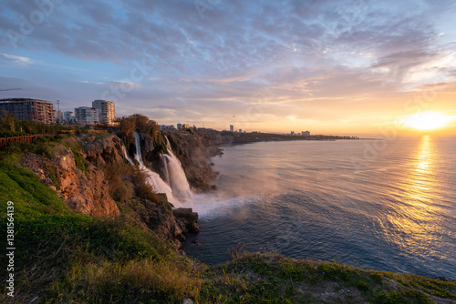Fototapeta premium Sunrise View of Düden Waterfall, Antalya, Turkey
