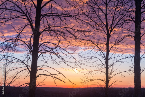 Obraz premium Sunrise viewed through bare branches