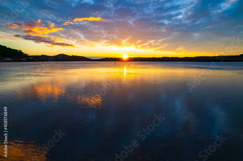 © Merrillie, Obraz premium Sunrise waterscape and reflections with clouds