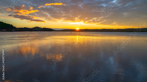 © Merrillie, Fototapeta premium Sunrise waterscape and reflections with clouds