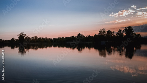 © Marko Tomic, Obraz premium Sunrise with a lake in the foreground