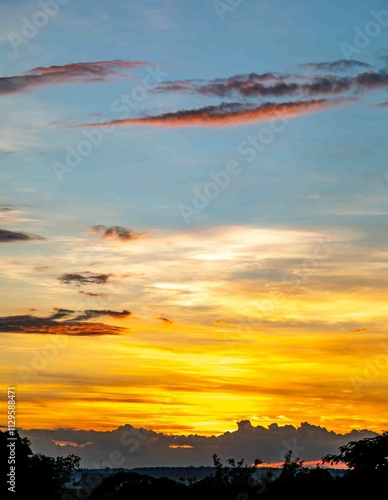 © Adilson, Fototapeta premium Sunrise with intense natural orange lights and idyllic dramatic scenery