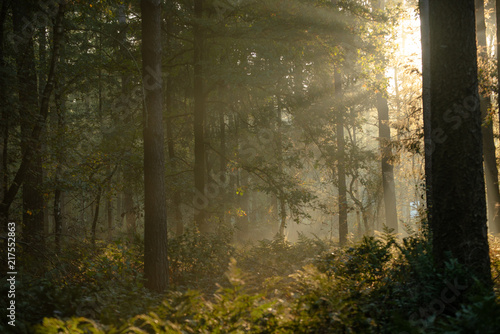 © olivier, Obraz premium Sunrise with light rays in a forest
